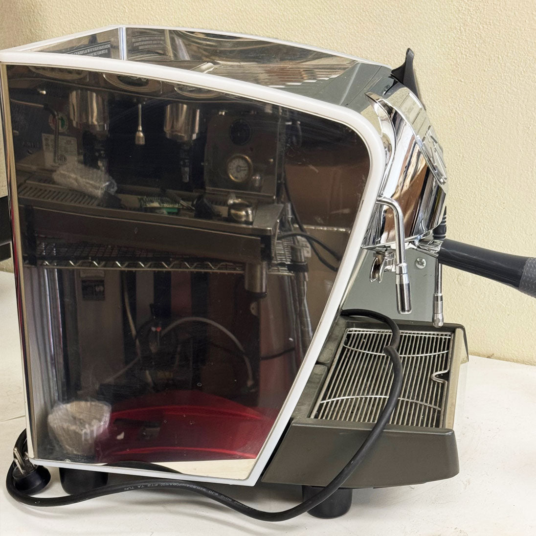 This machine has never been used except for testing in our shop. New right now online $2500. Sale price $1600. Includes 1 portafilter handle with a double basket and a blind basket.